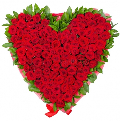 Композиция из 101 розы в виде сердца с доставкой в Люберцах