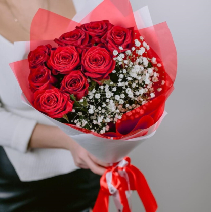 Букет из красных роз и гипсофилы | Купить в Люберцах