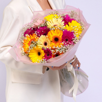 Как обратить на себя внимание понравившейся девушки, сделать красивый подарок любимому человеку, украсить праздничный стол дома? Интернет-магазин Delaflor предлагает купить герберы с доставкой в Люберцах по приемлемой цене. Наш каталог не ограничивается букетами на сайте, вы можете отправить фото понравившейся композиции нам на e-mail, в whats app. Кроме того, вы можете заказать у нас оформление помещения для любого праздника. Наши опытные флористы со вкусом украсят красивыми герберами зал, где будет проходить торжественное мероприятие.