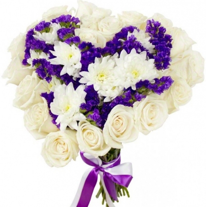 Букет сердцем из роз, хризантем и статицы | Купить в Люберцах
