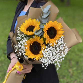 Яркие букеты с подсолнухами подарят хорошее настроение своему получателю!