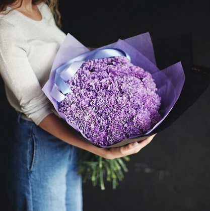 Букет из сиреневых диантусов в красивой упаковке
