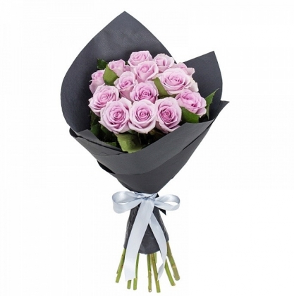 Сиреневые розы в черном крафте | Delaflor Люберцы